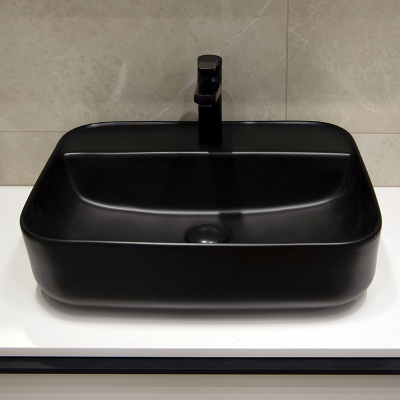 Fabricat din ceramică sanitară de înaltă calitate, lavoarul are o suprafață negru mat intens, ușor de curățat și rezistentă la uzură.