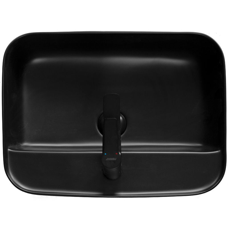Fluminia Lavoar pe blat Fluminia Juno-50MB, dreptunghiular, negru mat, cu orificiu pentru baterie, fără preaplin, 50 x 40 x 13 cm