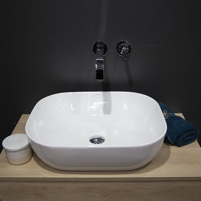 lavoarul este compatibil cu orice tip de blat în care se poate executa orificiul de 18,5 cm.