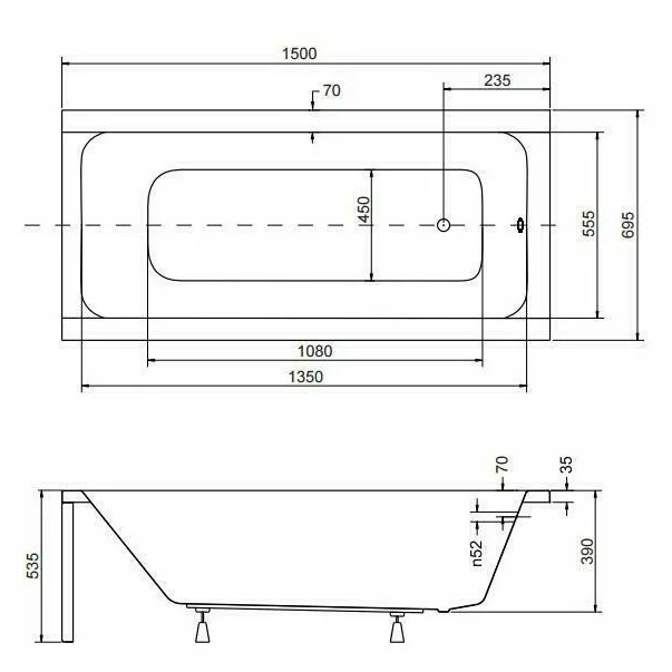 Cadă acrilică Besco Modern 150x70 cm, cu picioare incluse. Design modern, suprafață lucioasă și durabilă, ideală pentru băi contemporane.