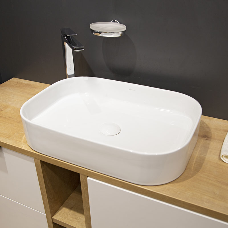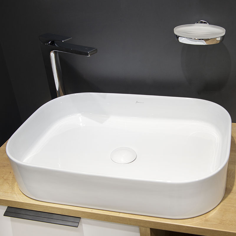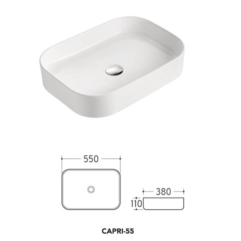 Un lavoar elegant și modern, Fluminia Capri 55 se remarcă prin designul său dreptunghiular cu pereți subțiri și finisajul alb lucios. Este alegerea potrivită pentru băile contemporane, combinând estetica minimalistă cu funcționalitatea.