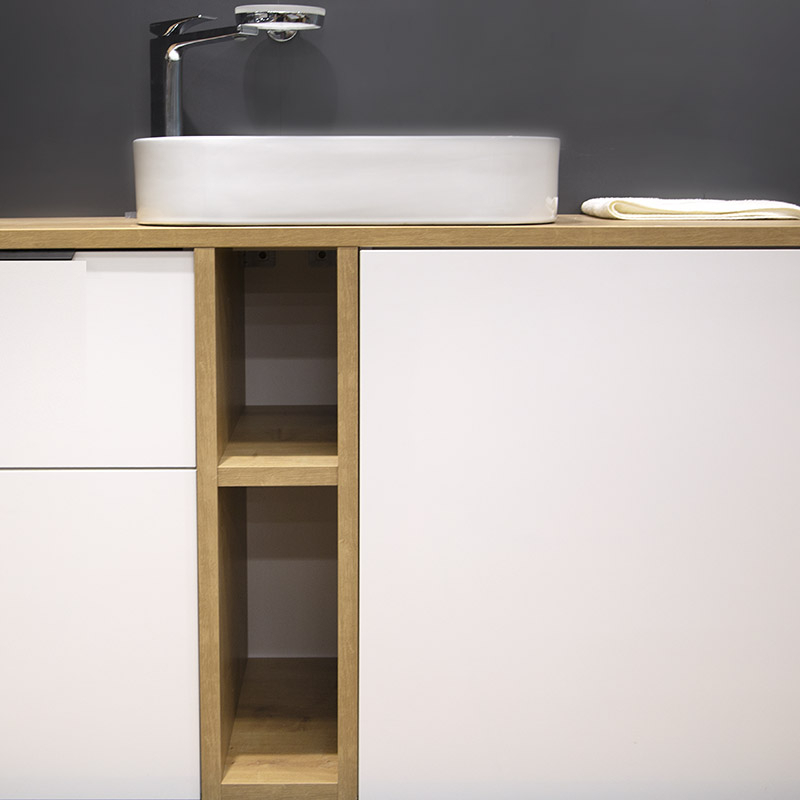 lavoarul se montează fie pe un blat din marmură, travertin, MDF, fie pe un mobilier care în partea de sus se închide cu un blat;