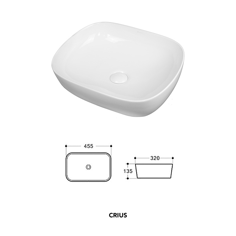 Lavoarul pe blat Fluminia Crius White este un produs modern, cu design minimalist, potrivit pentru băi elegante și contemporane.