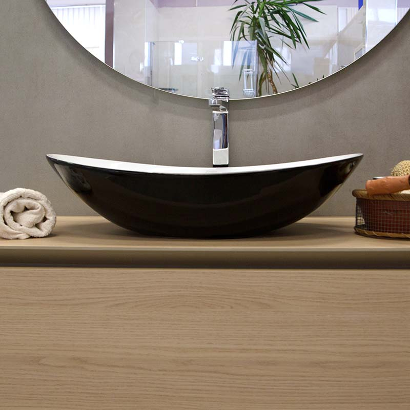 se montează pe blat din marmură, travertin, MDF sau mobilier cu blat superior închis;