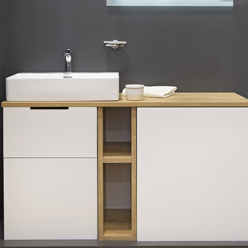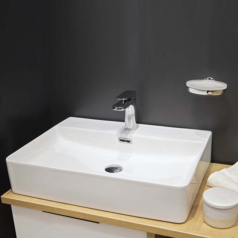 se montează pe blat din marmură, travertin, MDF sau mobilier cu blat superior închis;