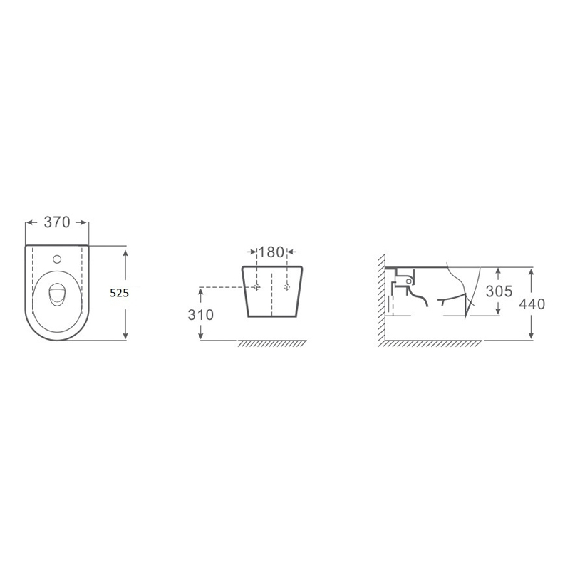 Bideu suspendat Fluminia Minerva, cu un orificiu pentru baterie și orificiu de preaplin, prevăzut cu fixare ascunsă pentru un aspect modern și elegant.