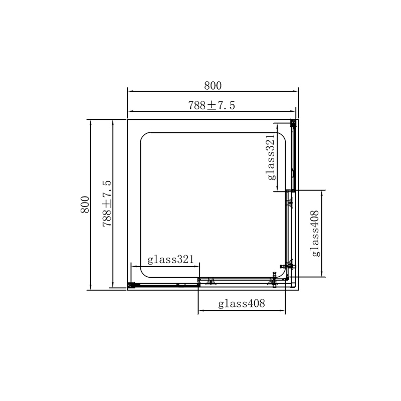 Tip: cabină de duș pătrată, cu intrare pe colț