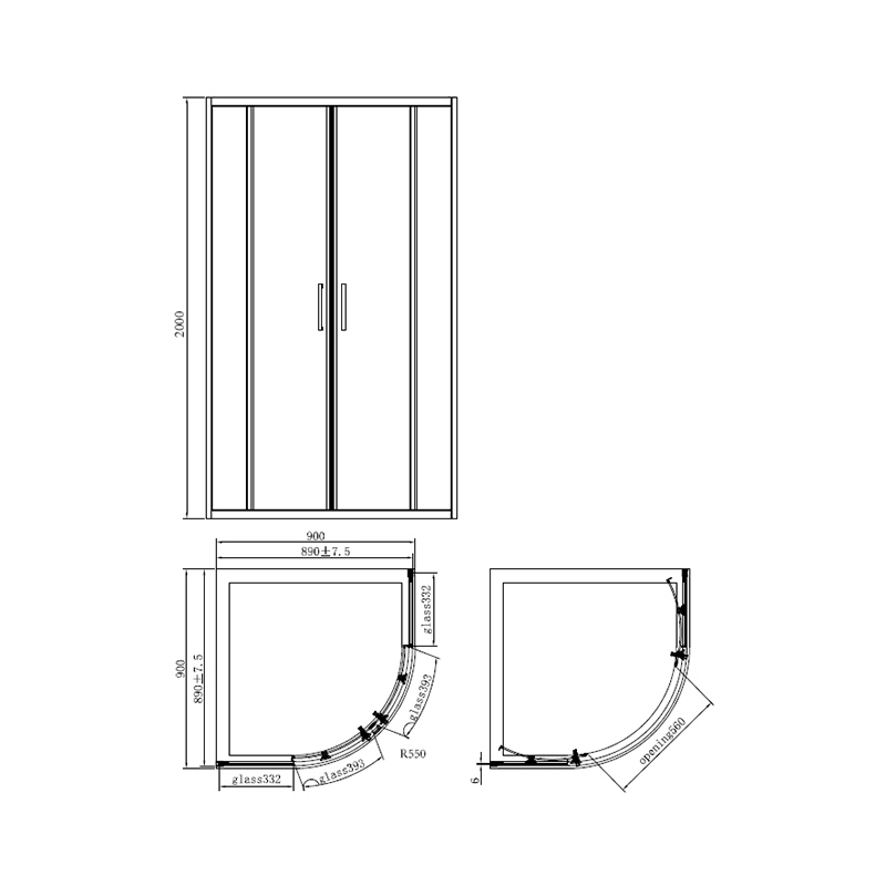 Dimensiuni: 90 x 90 cm (pentru cadă compatibilă cu raza de 55 cm)