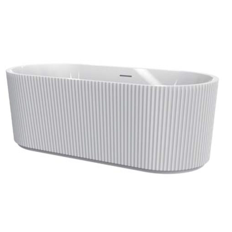 Modelul prezintă o formă ovală cu mască riflată, conferind un aspect sofisticat și distinctiv. Sistemul freestanding permite amplasarea căzii oriunde în încăpere sau lângă perete, oferind libertate totală de design. Structura tip sandwich (acril + izolator + acril) garantează durabilitate, masivitate și izolare termică eficientă. Picioarele reglabile ascunse permit montajul perfect chiar și pe pardoseli ușor denivelate.