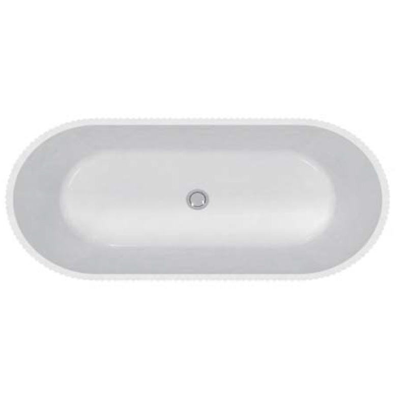 Cadă ovală freestanding Salome 170 din acril sanitar alb lucios, cu mască riflată și instalație completă (preaplin, ventil, sifon). Design modern, durabil și ușor de întreținut, ideal pentru băi contemporane.