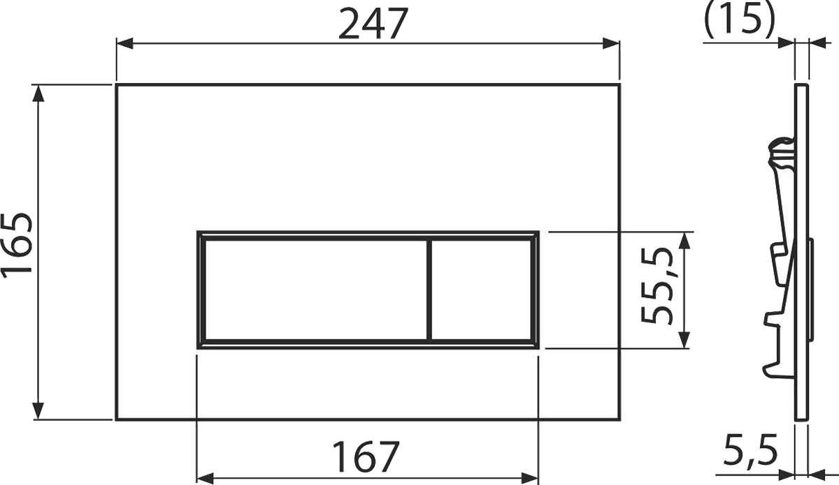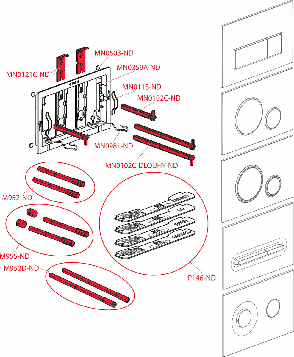 Sistemul de dublă comandă (dual flush) permite economisirea apei, oferind posibilitatea de a selecta între două volume de spălare. Clapeta THIN M575 este compatibilă cu majoritatea rezervoarelor încastrate și reprezintă o soluție practică și estetică pentru orice baie modernă.