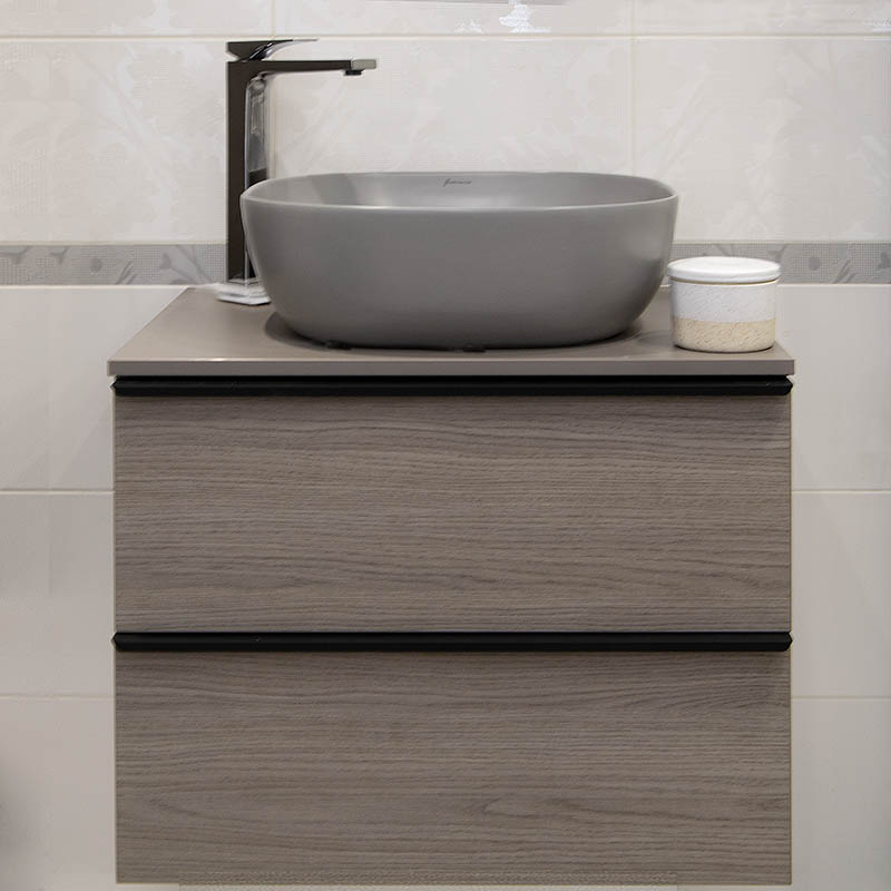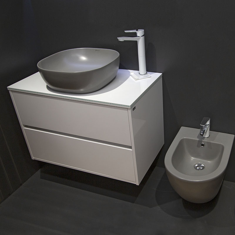 Lavoarul Fluminia Calio-MG este un produs modern cu design minimalist, pătrat cu margini rotunjite, conceput pentru montaj pe blat. Fără orificiu pentru baterie și fără preaplin, oferă flexibilitate în alegerea bateriei și a ventilului, care se comandă separat. Fabricat din ceramică sanitară de înaltă calitate, lavoarul se integrează ușor pe blaturi din marmură, travertin, MDF sau pe mobilier special amenajat.