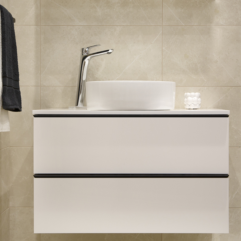 Finisaj alb lucios, ușor de întreținut și integrat în orice stil de baie