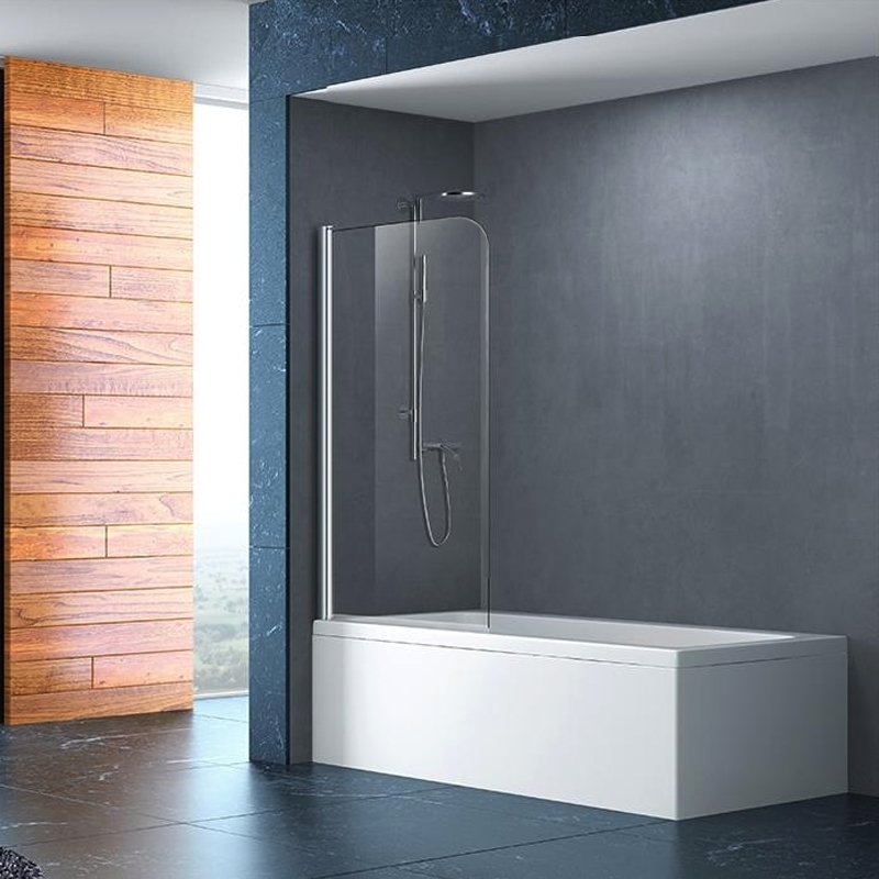 Paravan de cadă Mediterraneo Round 1, pivotant, 80x140 cm, crom, sticlă securizată de 6 mm, montaj reversibil. Design modern și protecție eficientă.