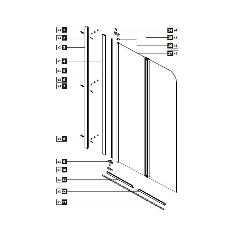 Tip: paravan pivotant, cu 2 elemente pliabile