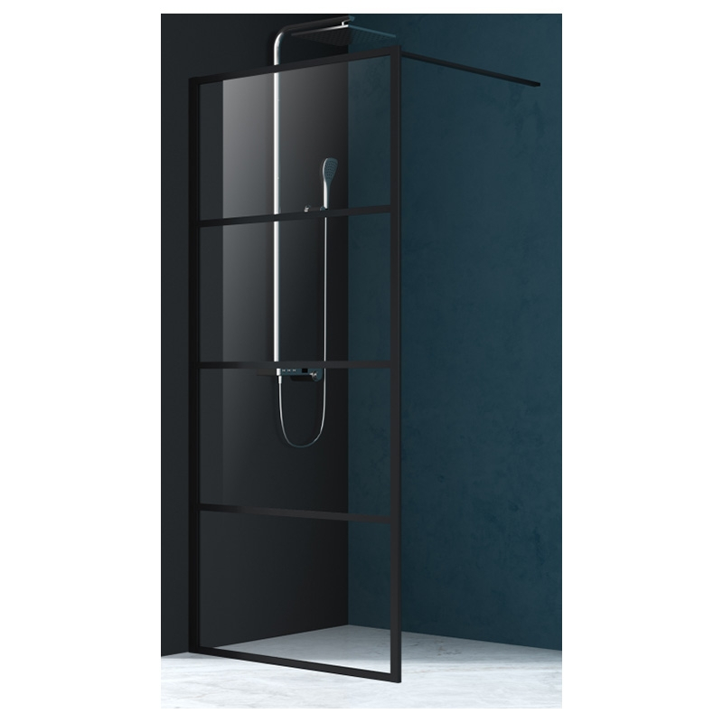 Paravan de duș walk-in Mediterraneo Black 4, 100x200 cm, sticlă securizată 8 mm, profil negru mat, bară stabilizatoare reglabilă. Montaj reversibil, design modern.