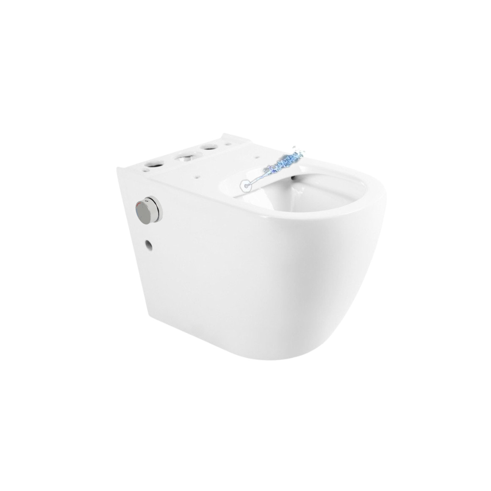 - Design Rimless: Vasul WC fără ramă interioară (rimless) previne acumularea murdăriei și bacteriilor, facilitând o curățare mult mai ușoară și oferind o igienă superioară.