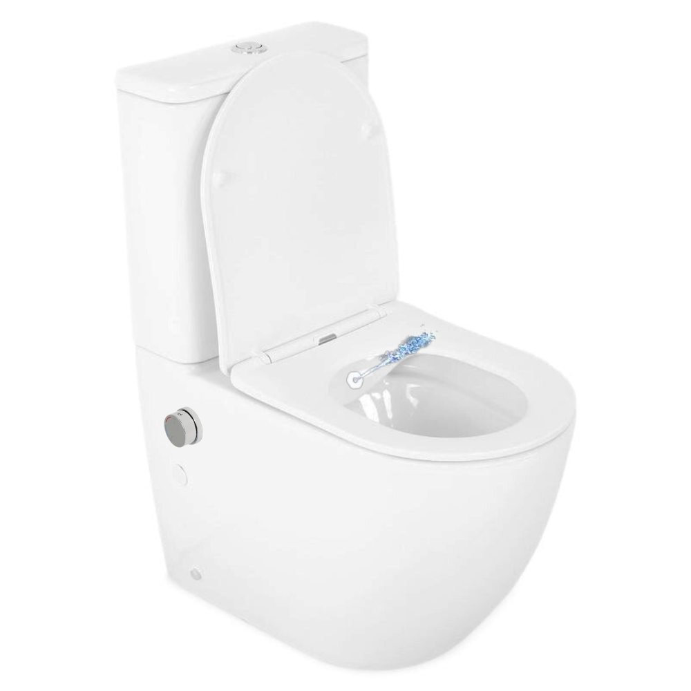 Set vas wc duobloc cu functie de bideu rimless Foglia Eco cu rezervor si capac soft close inclus, alb lucios
